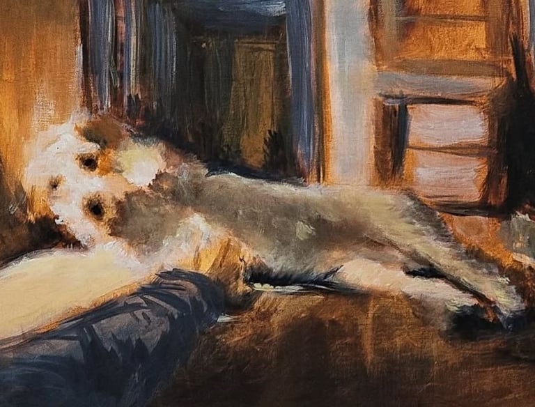 My greatest source of inspiration is my dog, Wallace, who accompanies me on my artistic journeys and reminds me, every day, of the sincerity and purity I strive to capture.